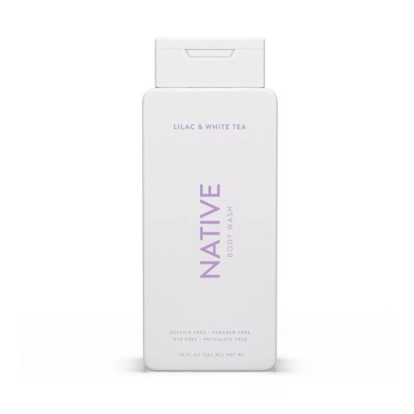 Este gel de baño de Native tiene aroma a lila y té blanco.