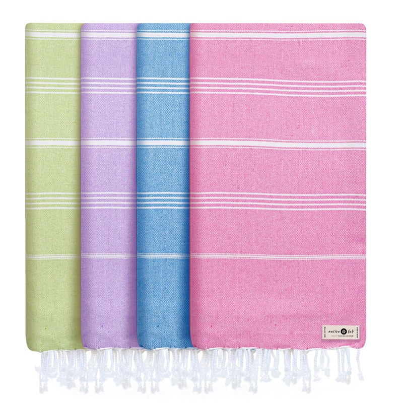 Native Fab 4 Pack Turkish Cotton Beach Towels, Oversized, Soft, Sand Free, Absorbent, Quick Dry, Lightweight for Bath, Pool, Travel, Spa - Rose Pink, Sky Blue, Lavender, Lemon Green