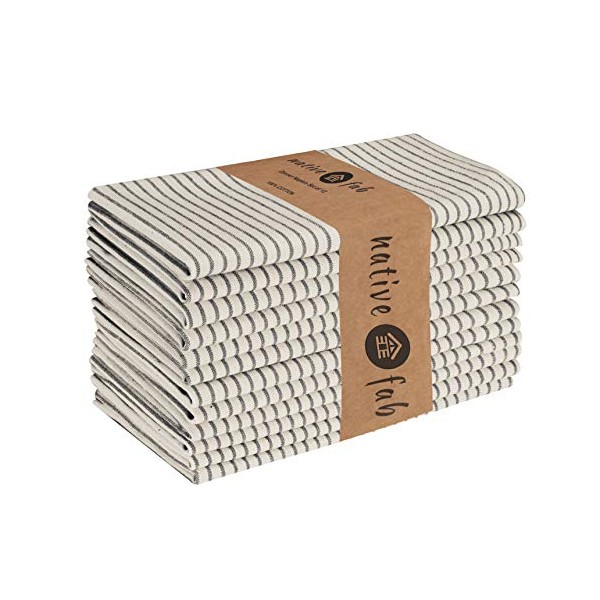 Native Fab Set of 12 Farmhouse Stripe Cloth Dinner Napkins Cotton 18x18 Absorbent Soft Restaurant Hotel Quality, Everyday Use Easy Care Washable Wedding Dinner Napkins Black Beige