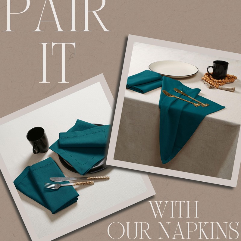 Native Fab Tablecloth 52x70 Inches - 100% Cotton, Durable, Wrinkle-Free, Machine Washable Table Cover for Dining Room, Banquets, Parties, Holiday, Events - Elegant, Easy Care, Home Décor - Teal Green