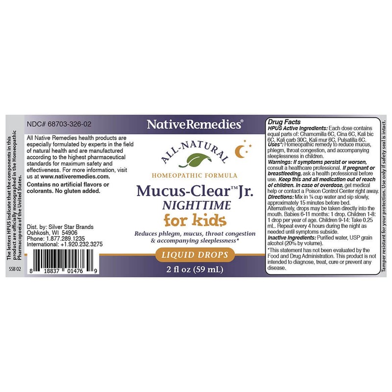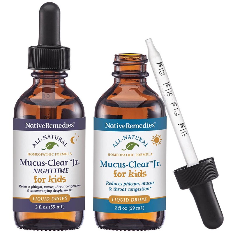 - EASY TO USE – Taken internally, Mucus-Clear Jr. and Mucus-Clear Jr. Nighttime contain no artificial colors or preservatives and are available in convenient, concentrated tincture formulas. Simply add drops to 1/4 cup of water and sip slowly. Alternatively, drops may be taken directly in the mouth. For Daytime relief - Babies 6-11 months: 1 drop, Children 1-8 years: 1 drop per year of age, Children 9-14 years: 0.25 mL. Follow the same dosing 15 minutes before bed with Mucus-Clear Jr. Nighttime.