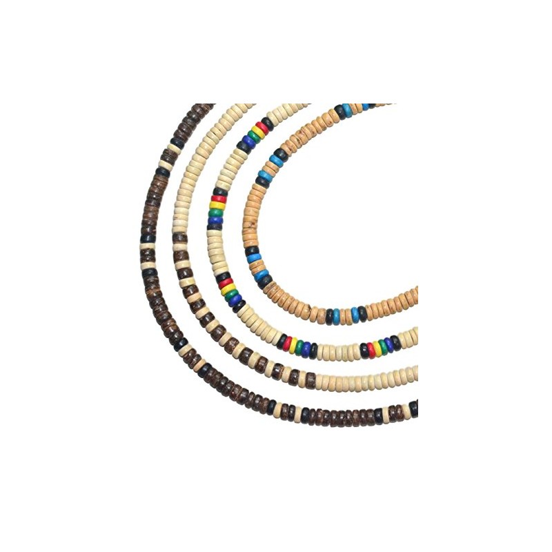 Native Treasure 13" (4 Pack) ANKLETS for Men and Women, Summer Beach Surfer ANKLETS From the Philippines, Mixed Brown and Color Fast Coconut Beads