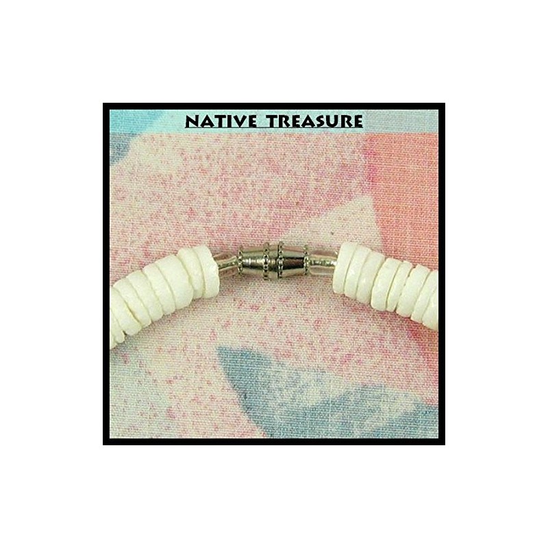 Native Treasure 18" Mens and Womens Tropical Jewelry Summer Beach Surfer Necklace From the Philippines, Polished Smooth White Clam Heishe Ark Shells
