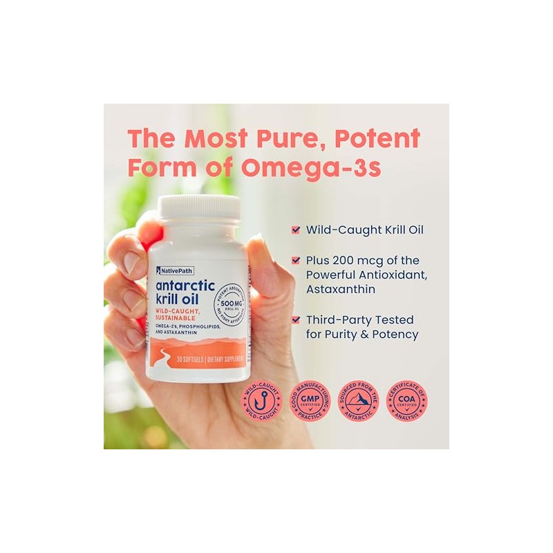 NativePath Aceite de krill antrtico cidos grasos omega-3 sostenibles capturados salvajes con EPA y DHA Suministro de 30 das Apoyo para...
