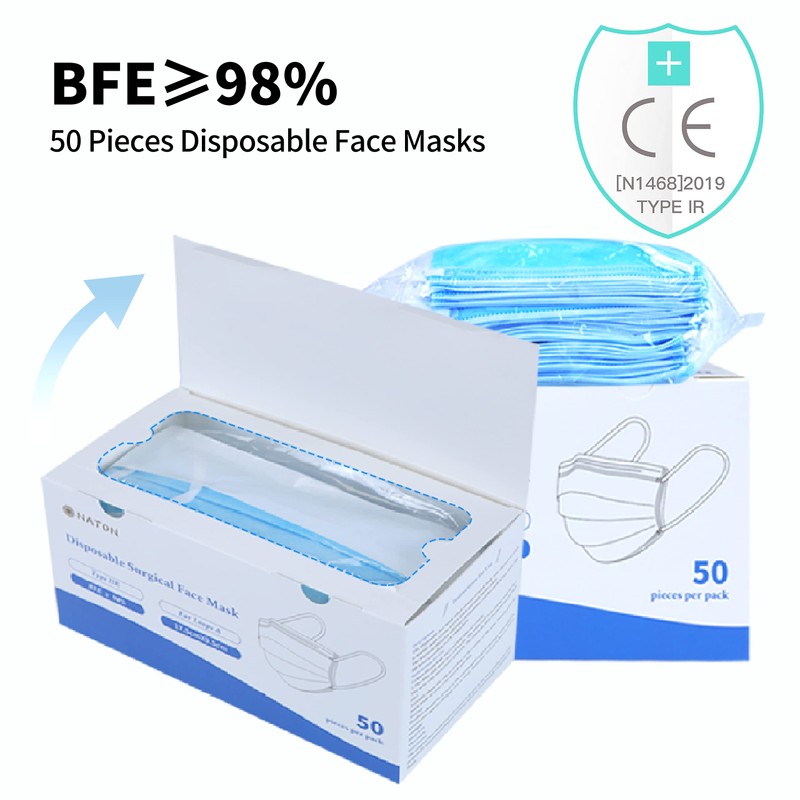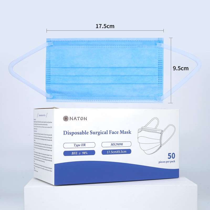 - 3 Layers Material - NATON protective face masks consist of Non-woven fabric, high-density filter layer and Skin-Friendly composite fiber with a 98% of filtration rate against airborne particles. Fluid resistant meanwhile maintaining perfect air permeability.