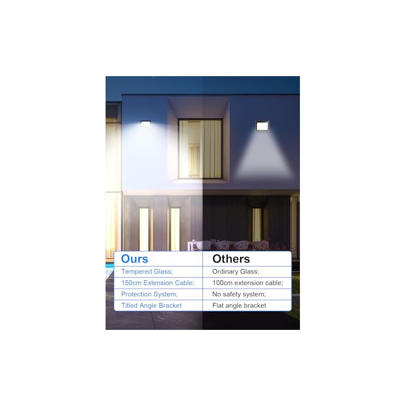 - ??Upgrate Heat Dissipation??Das Design des Aluminium-Druckguss-Geh?uses, die effiziente K??hlstruktur und das Hochtemperaturglas machen diese Outdoor-LED-Sicherheitsbeleuchtung langlebiger und zuverl?ssiger. Es kann dieses LED-Flutlicht vor den Auswirkungen von extremem Wetter sch??tzen.