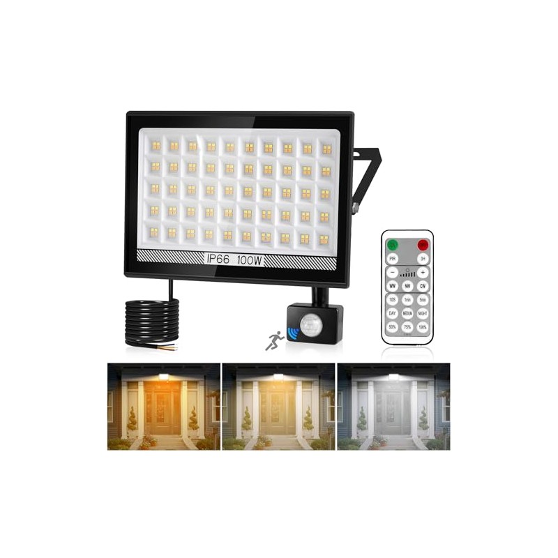 - ??3 Farbtemperaturen & Dimmbar??-NATPOW 100W Security Lights kommen mit 3 Farbtemperaturen (3000K/4000K/6500K) zur Auswahl, und Helligkeit (10%-100%) mit der mitgelieferten Multifunktions-Fernbedienung, um Ihre Lichtbed??rfnisse perfekt zu erf??llen.