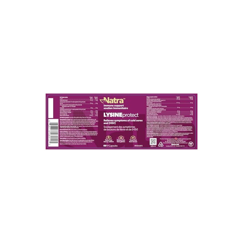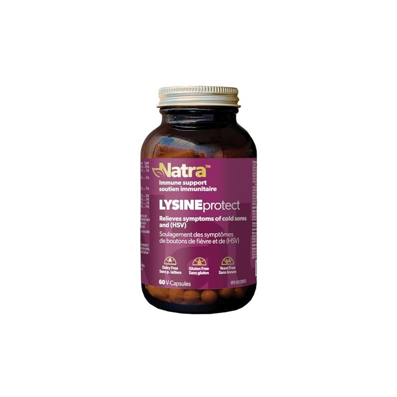 Natra LYSINEprotect 60 V-Capsules - Immune Support Relieves Cold Sores, HSV, Sore Throats with L-Lysine, Andrographis, Olive Leaf, Prunella, Zinc, Vitamin C & B6 - Dairy Free, Gluten Free, Yeast Free