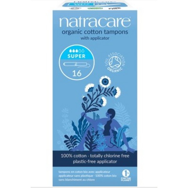 Natracare Tampons Super Organic 16 Pack with ApplicatorNatracare tampons are made from only certified organic 100% cotton and are the only fully certified organic cotton tampons available in the world today. They are non-chlorine bleached and women can be reassured that they do not contain synthetic materials, such as rayon, or chemical additives such as binders or surfactants.
