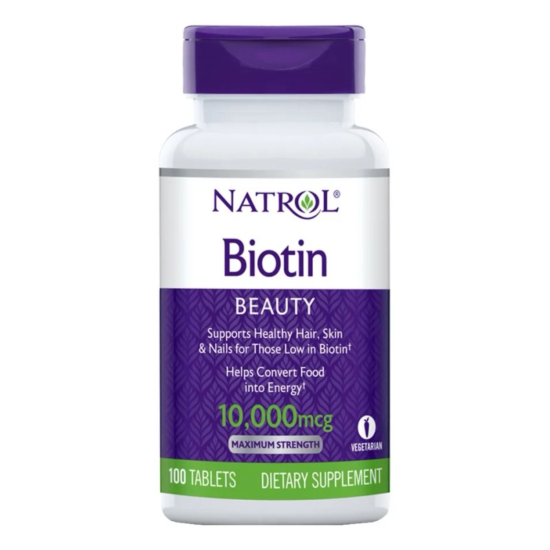 Transforma tu look con Natrol Beauty Biotin 10,000mcg. Estas 100 tabletas te ofrecen un suministro para 100 días, potenciando el crecimiento y la fuerza de tu cabello, la luminosidad de tu piel y la resistencia de tus uñas. Además, apoya tu metabolismo energético. ¡La vitamina B esencial para una belleza vibrante desde el interior!