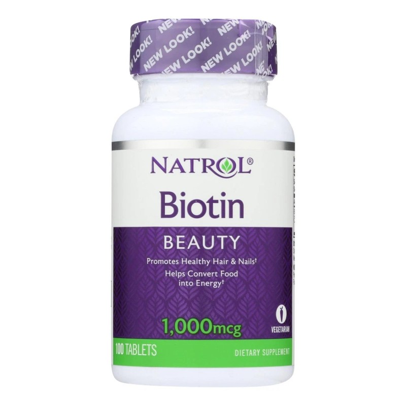 Dietary supplement. Promotes healthy hair and strong nails. Supports cellular energy production. Easy-to-swallow. Biotin is an important b-vitamin that promotes healthy hair and nails, as well as energy production. By supporting the matrix of hair and nails, biotin promotes shiny, lustrous hair and strong, resilient nails. 100% vegetarian. 1-800-2-natrol (800-262-8765). Www.natrol.com. No milk, egg, fish, crustacean shellfish, tree nuts, wheat, peanuts, soybeans, yeast, artificial colors or flavors, added sugar, starch or preservatives. (these statements have not been evaluated by the food and drug administration. This product is not intended to diagnose, treat, cure or prevent any disease.)