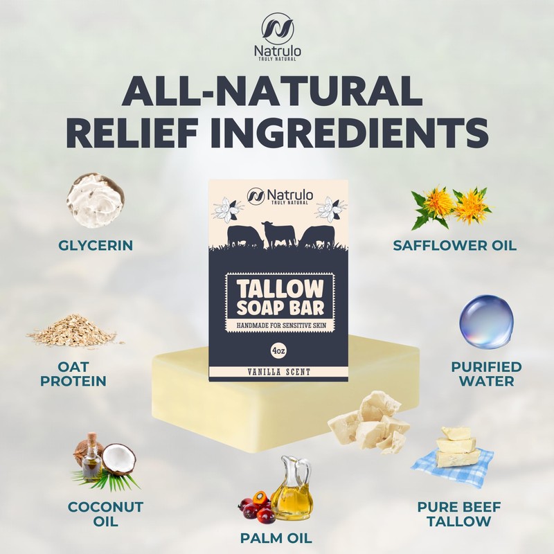 Natrulo Beef Tallow Soap Bar C All Natural Grass Fed Tallow Soap Vanilla C Moisturizing Face & Body Wash Great for Eczema, Dry, Itchy, Sensitive Skin C Handcrafted Bath Soap for Adults, Kids, Made in USA