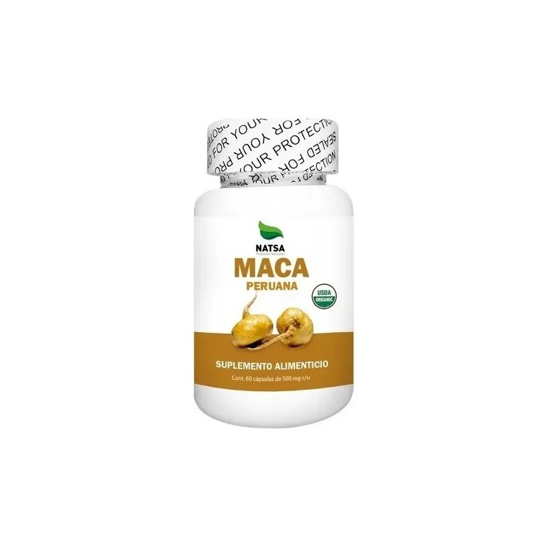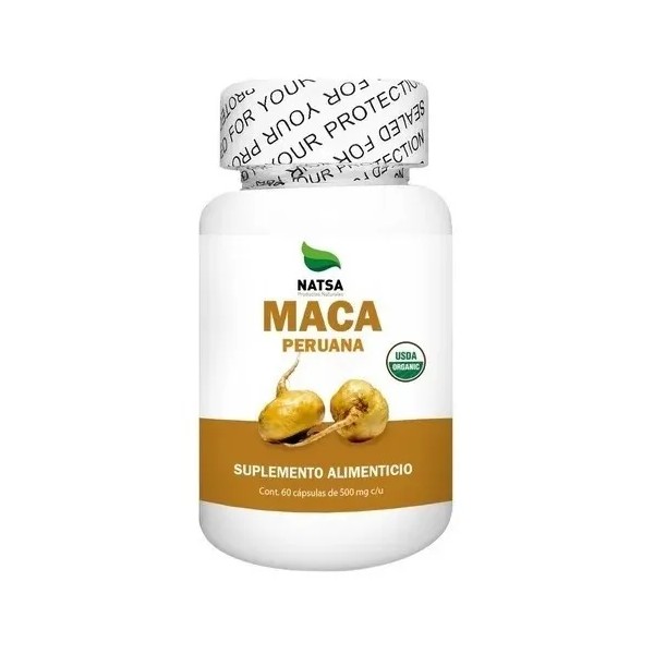 Natsa Maca Peruana es un suplemento alimenticio en cápsulas que aprovecha los beneficios de la maca peruana amarilla, una raíz conocida por sus propiedades energizantes y nutricionales. Este producto está destinado a adultos a partir de 18 años que buscan mejorar su rendimiento físico y bienestar general de manera natural.