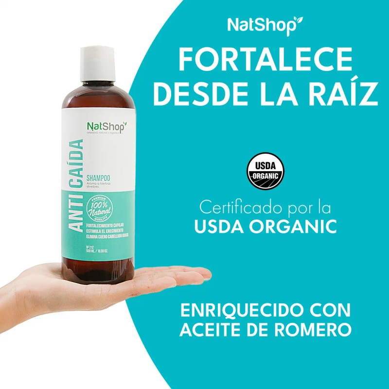 NATSHOP | Shampoo Anticaída Natural de Romero y Vitamina E 500ml | Controla la Caspa y Regula el Exceso de Grasa - Cuidado del Cabello Natural | Cuidado Capilar Orgánico