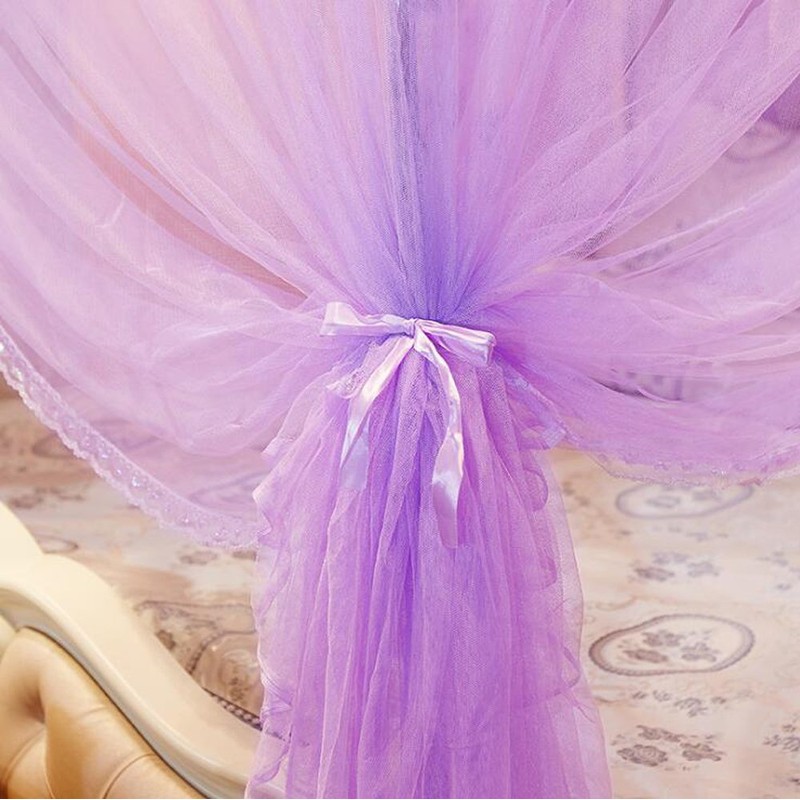 Nattey 4 Corners Princess Bed Curtain Canopy Canopies For Girls Boys Adults Bed Gift (Queen, Purple)