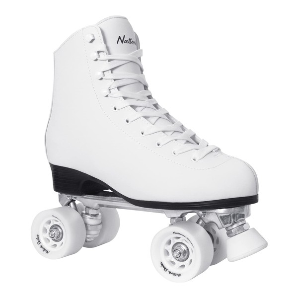 Nattork Roller Skates for Women and Girls, PU Leather High-top Quad Skates for Beginner, Indoor Outdoor Double-Row Skates for Adults - White