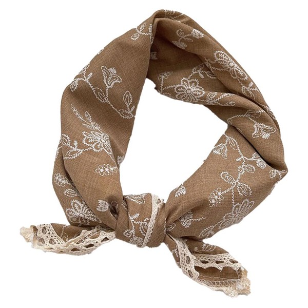 [Natty & Company] スカーフ レディース ボタニカル 花柄 正方形 60×60cm 大判 おしゃれ シルク調 ポリエステル 洗濯しやすい ネッカチーフ バンダナ オフィス カジュアル 制服 かわいい 可愛い 韓国スタイル ホワイト ネイビー ピンク ブラウン 髪飾り バッグ レース フラワーズ 春 夏 (ブラウン)