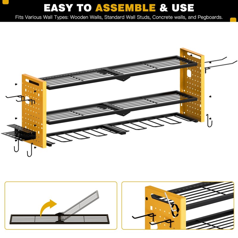 - Adjustable and Versatile Storage: With one movable shelf, you can easily adjust the rack to accommodate tools and items of different sizes, ensuring optimal organization and accessibility