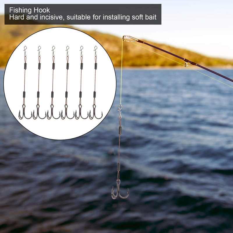 Natudeco 6Pcs Fishing Hooks Treble Hooks Kit Reusable Barracuda Hook Line Set Corner Bait Hook Lure Hook with Barbed
