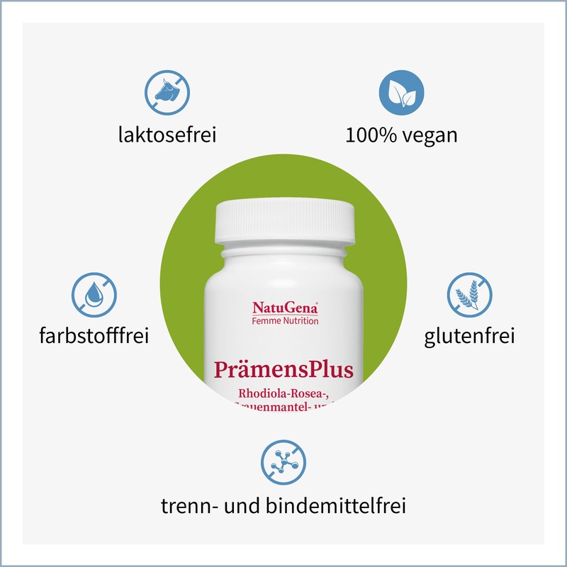 - ✔PrämensPlus was developed in collaboration with Prof. Dr. Döll especially for use in premenstrual syndrome (PMS)