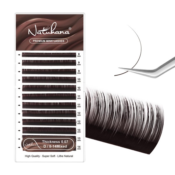 - ❈[Specifications]Unchanged Curvature:C/D curl,Thickness:0.07mm,Length:8-14mm Mixed in one tray.12Rows/case,including:8mmx1,9mmx2,10mmx2,11mmx2,12mmx2,13mmx2,14mmx1.One tray can meet your desired needs for flawless and natural appearance.