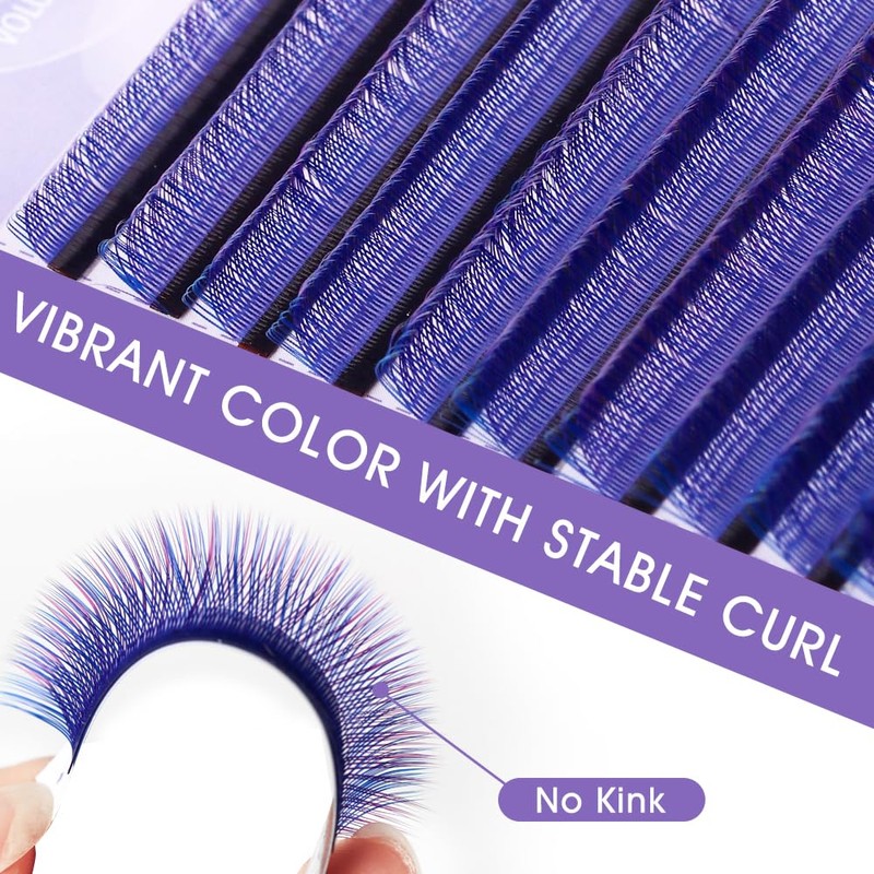 NATUHANA YY Eyelash Extension 0.07 mm LU Curls 8-14 mm Mixed Makeup Tray Eyelash Accessories Prefabricated Fans Y-Shape Volume Eyelash Extension (8-14 Mix, Black + Purple 0.07LU)