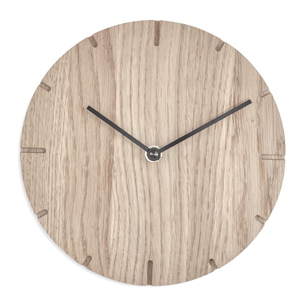 Natuhr Wall Clock Untreated Oak Wood Solid 20 cm Mini Solid Wood Silent U.T.S. Clock Movement (Untreated Oak, Black Hands)