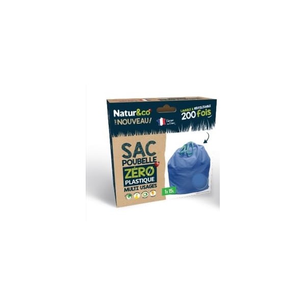 NATUR&CO Reusable 15 L Multi-Purpose Zero Plastic Bin Bag, Ultra Resistant, Odour Resistant, Anti-Bacterial, Sliding Links, Washable