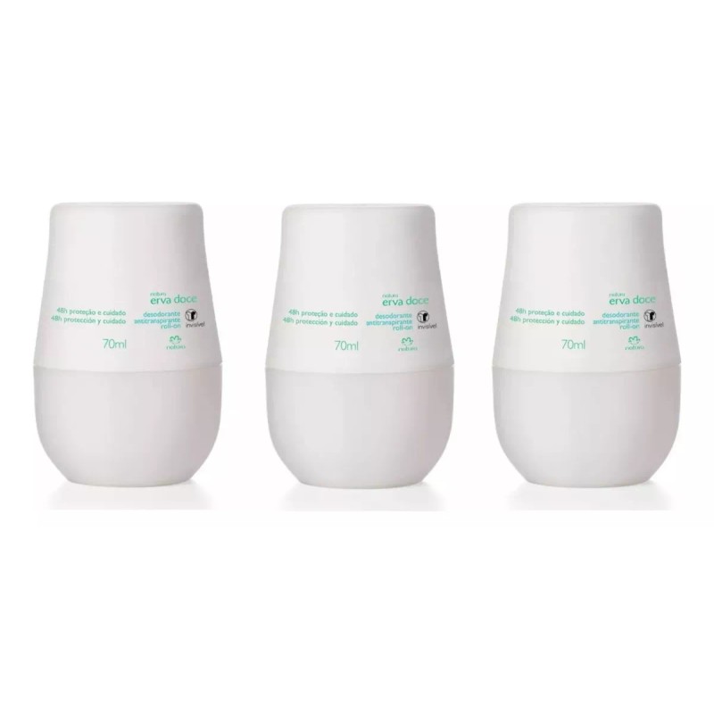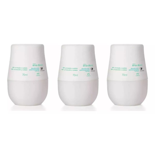 Paquete de 3 Desodorantes antitranspirantes Roll On Natura Erva Doce Natura 70 ml, NUEVO.