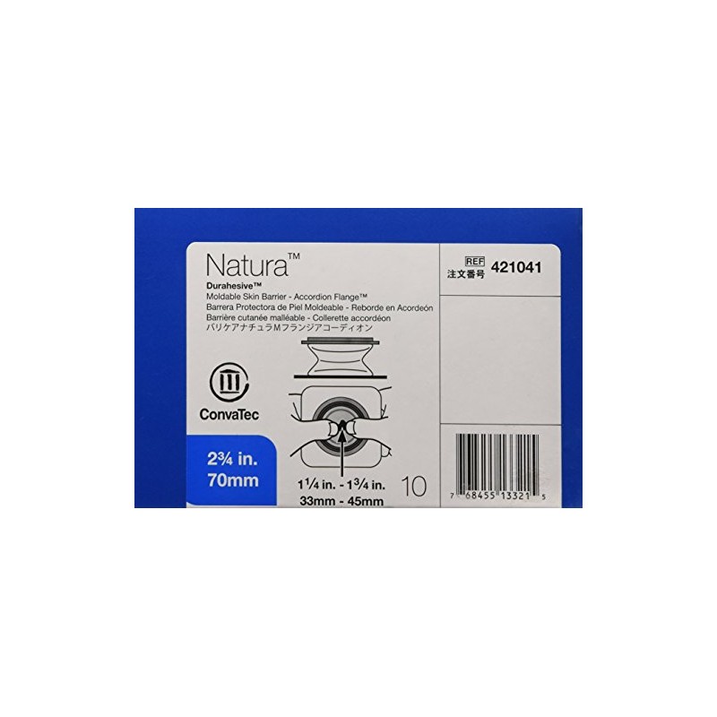 Natura Moldable Durahesive Skin Barrier Accordion Flange with Hydrocolloid Flexible Collar, Opening 1-5/16" to 1-3/4" (33 45mm), Flange 2-3/4" (70mm) Part No. 421041 Qty 10 Per Box