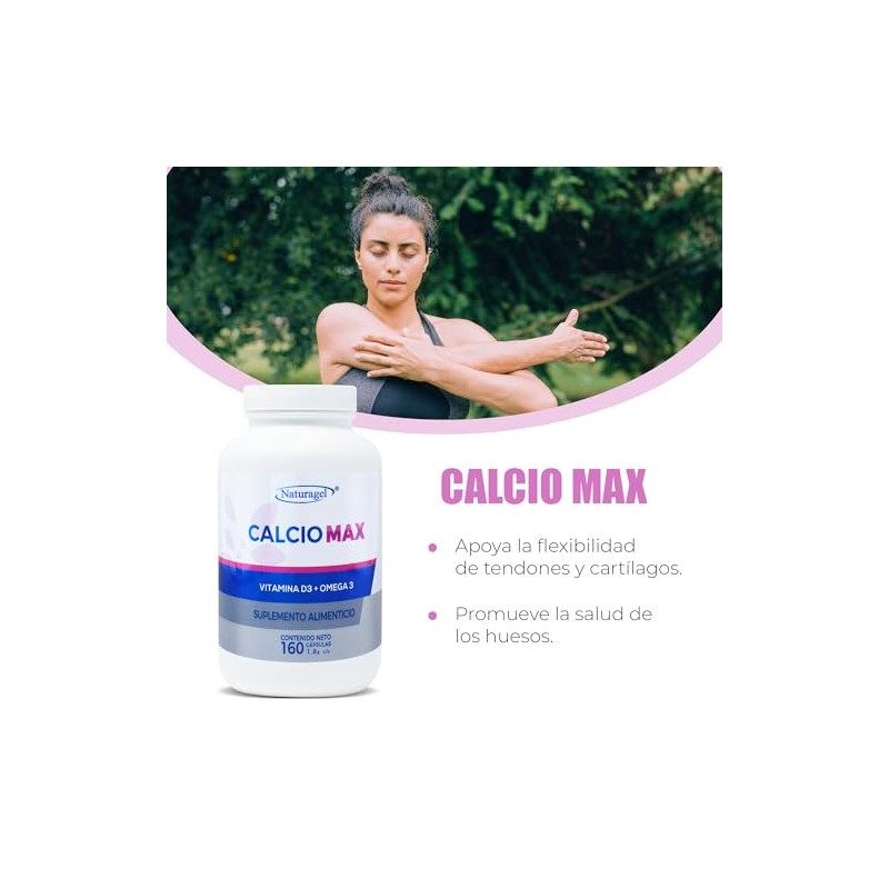 🌟 ⭐ Naturagel Calcio Max - Carbonato de Calcio + Vitamina D3 y Omega 3 - Suplemento para Salud Osea - 160 Tabletas ⭐ 🌟