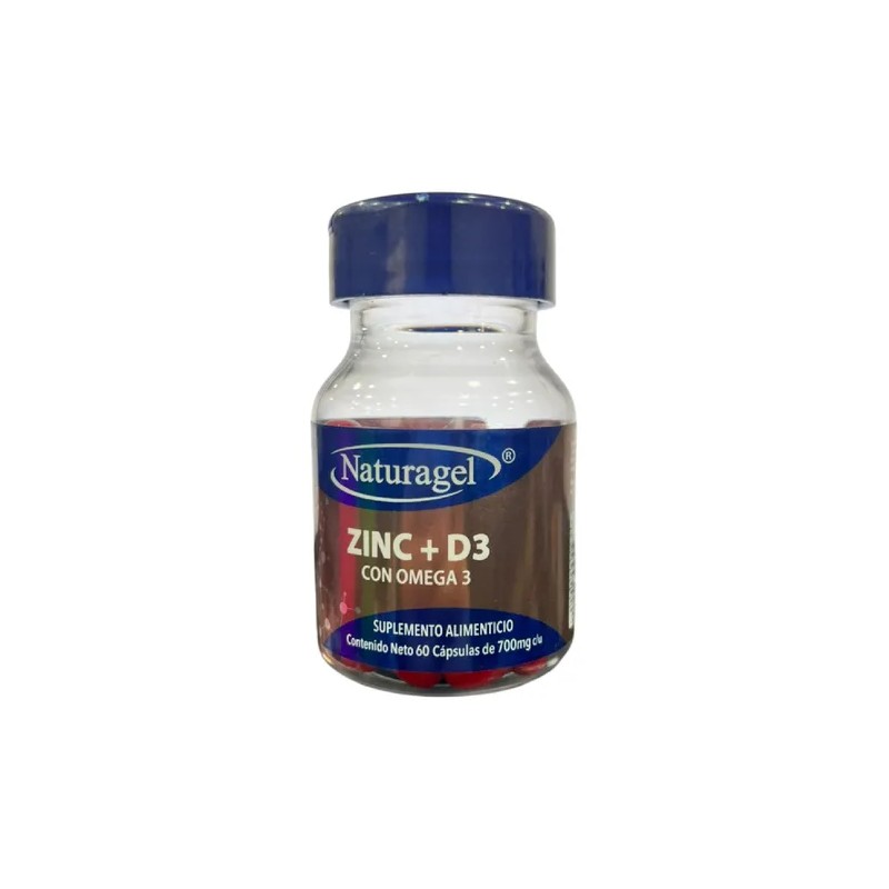 Naturagel Zinc Con Vitamina D3 Y Omega 3 | 60 Capsulas 700mg Sabor Sin Sabor