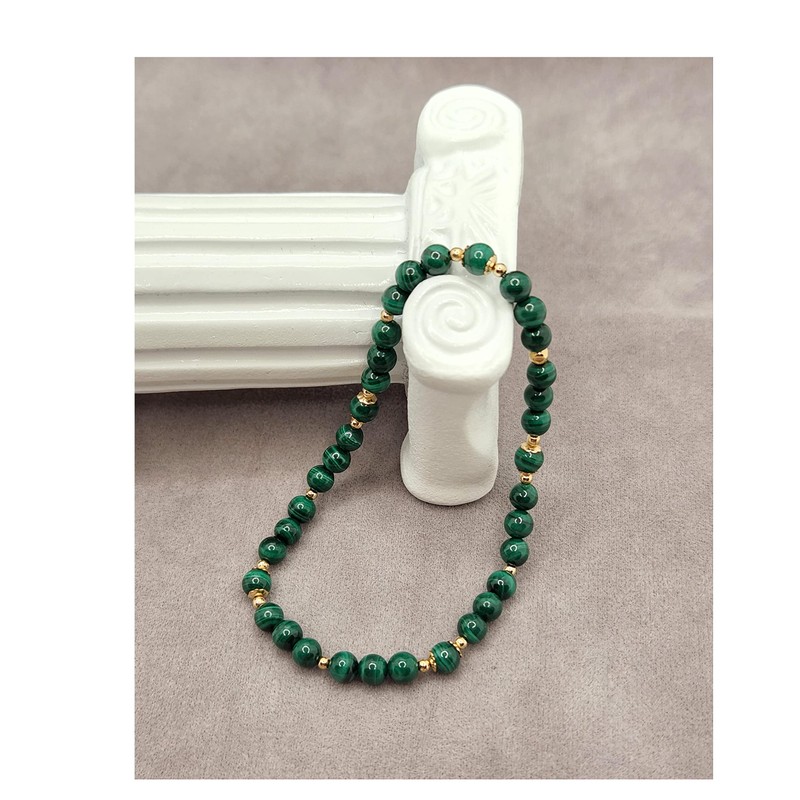 Natural 4.0~4.5mm Round Gemstone Stretch Bracelet with 14k Gold-Filled Beads and Caps (malachite)