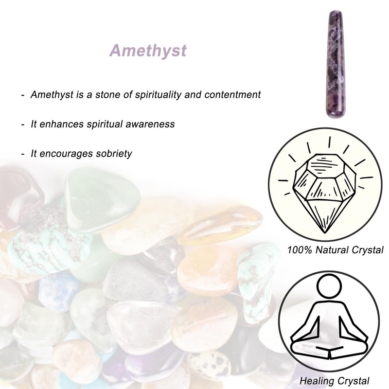 - Natural - You will receive 1pcs natural Amethyst Crystal massage wand, a velvet pouch. Made of 100% natural and genuine gemstones, manually carved and polished without using any chemical treatment nor any waxing.