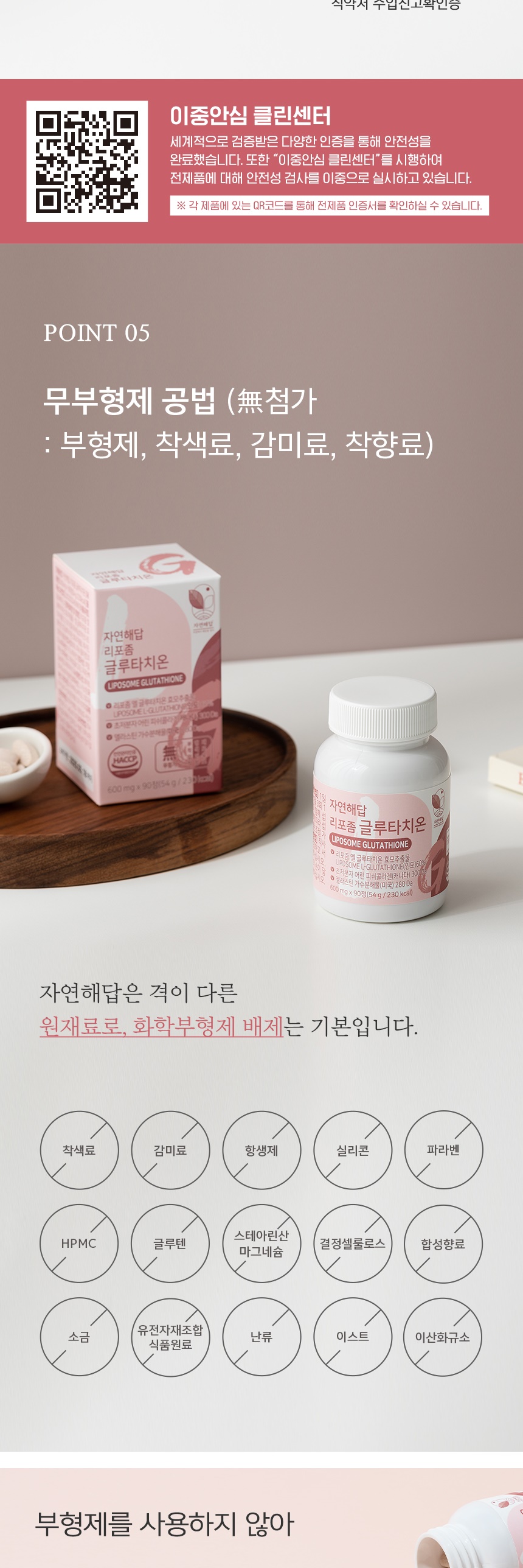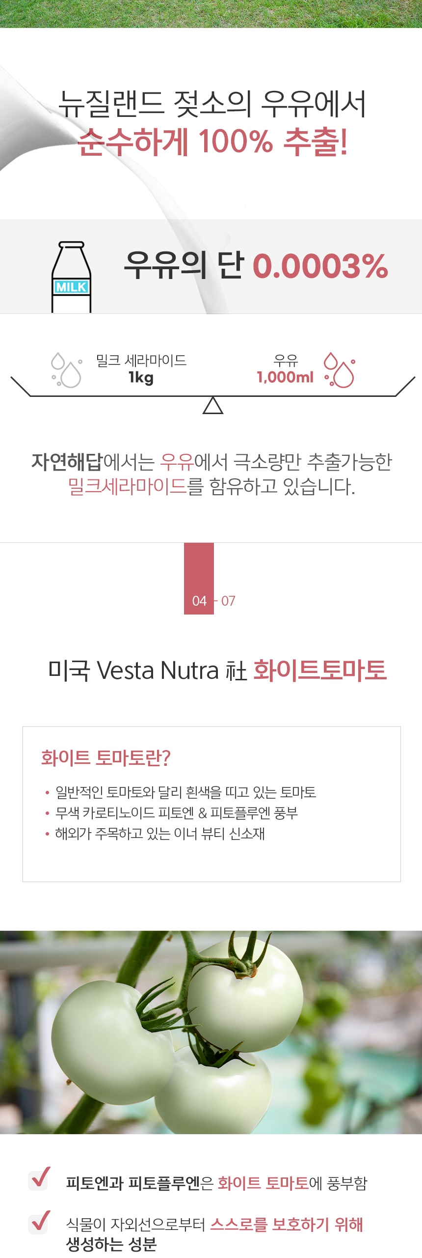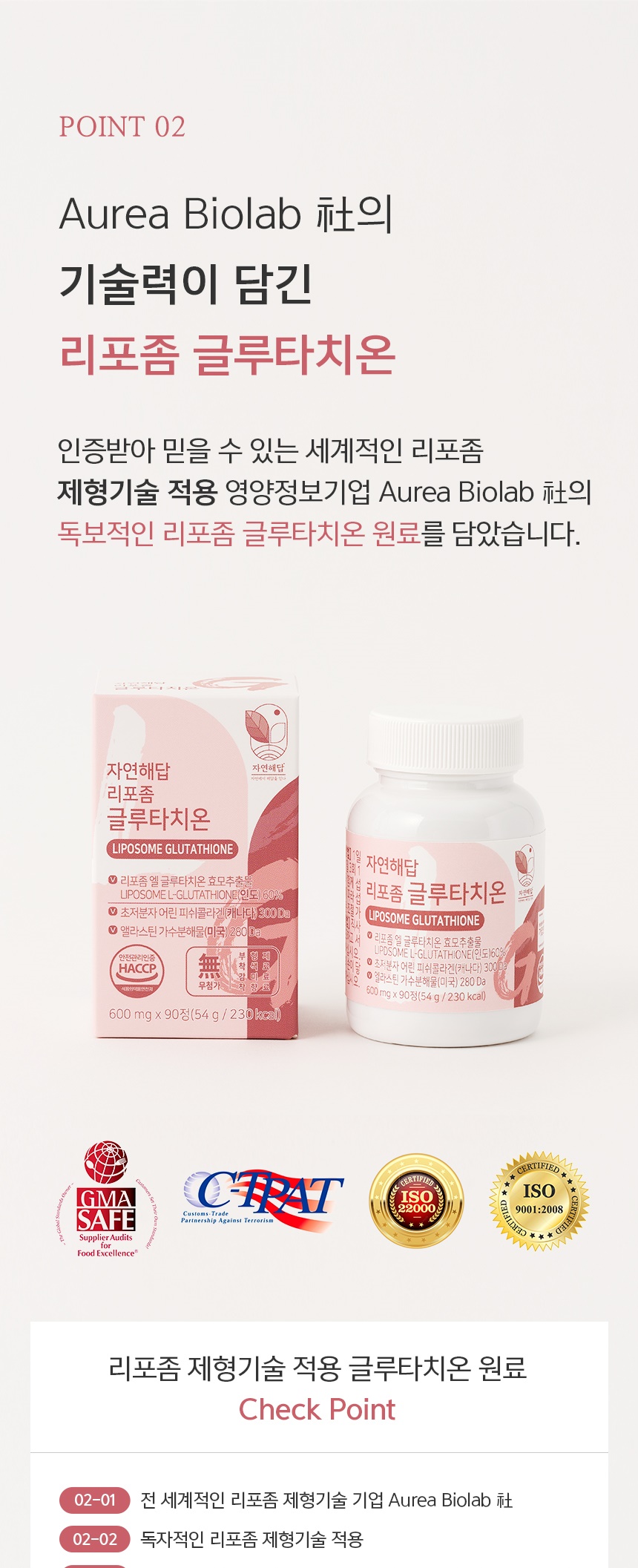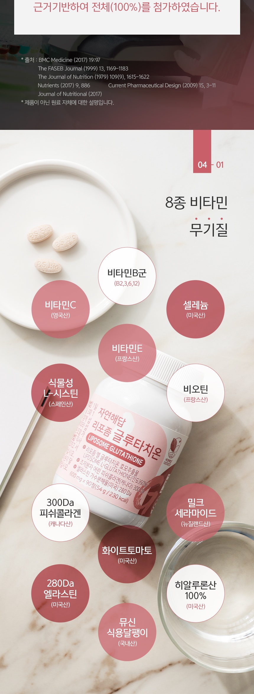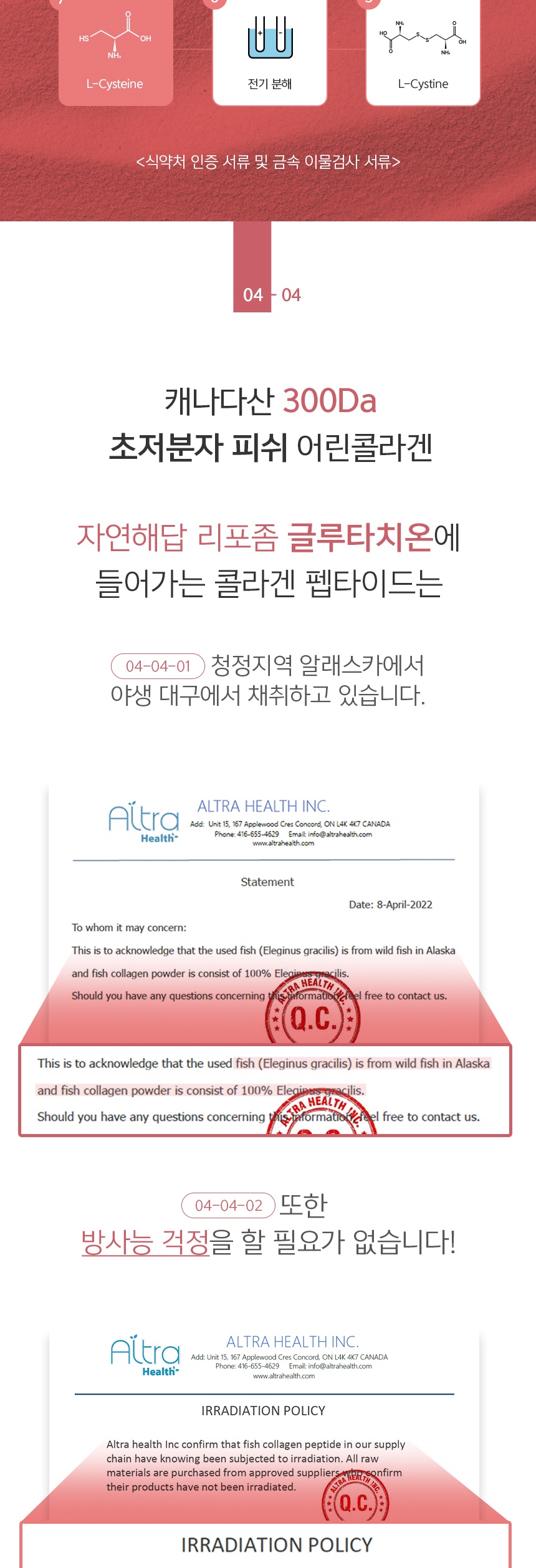 - Name and content of raw materials: liposome L-glutathione yeast extract 32.5%, (sodium octenyl succinate starch, L-glutathione yeast extract, lecithin, turmeric extract) (Indian product) 60%, fish collagen (300Da) (USA product), fructose Oligosaccharides, milk protein concentrate (milk ceramide) (made in New Zealand), white tomato concentrated extract powder (made in the United States), L-cystine (made in Korea)