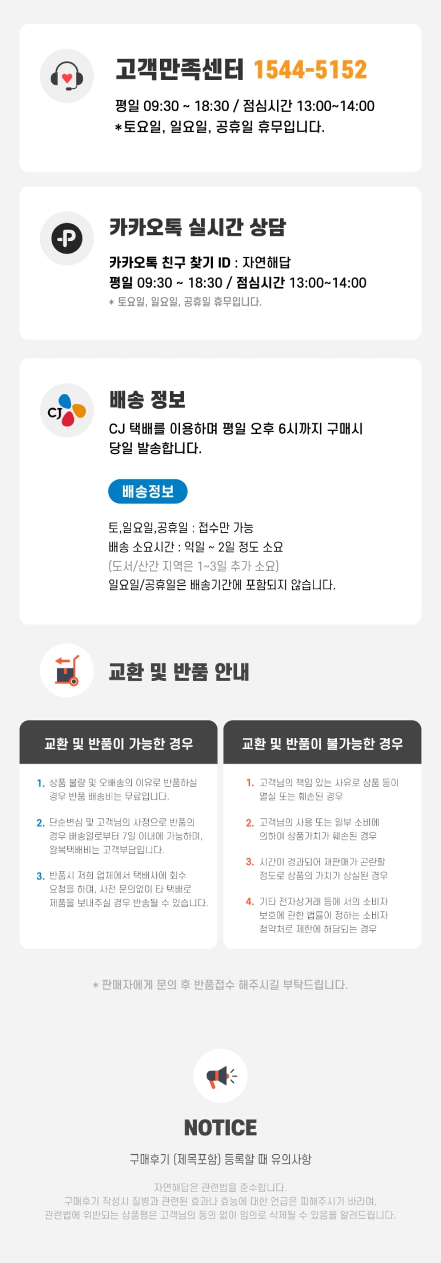 - Consumer consultation phone number: Natural Answer Customer Center 1544-5152