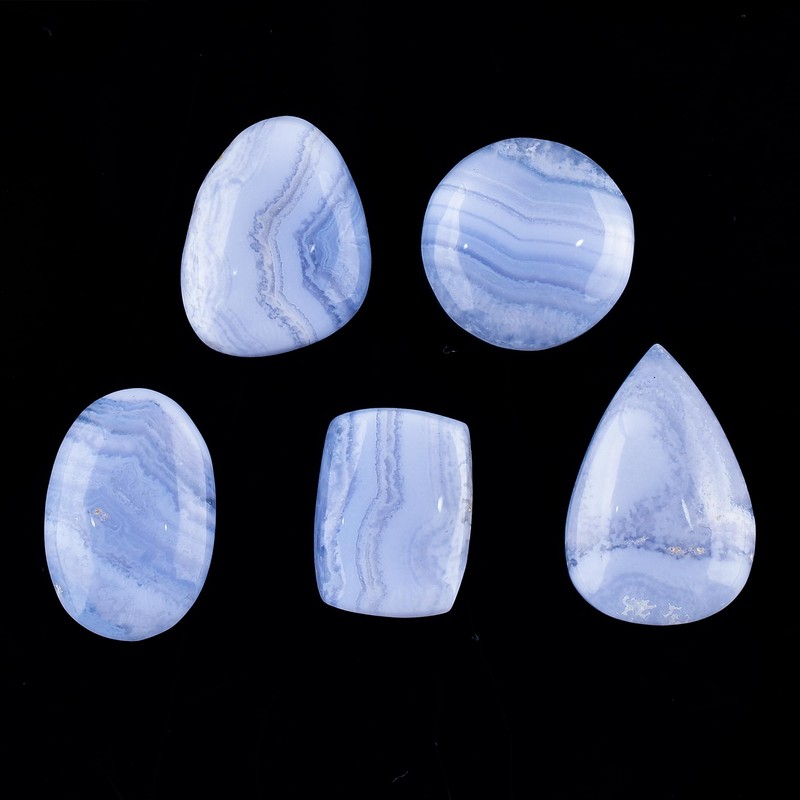 Natural Blue Lace Agate Gemstones and Crystals Cabochon Lot, DIY Jewelry Making Loose Gemstones, Chakra Healing Crystals, Wire Wrapping Cabochons, Pack of 5 Pcs