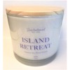 Natural Coconut + Beeswax Scented Candle Island Retreat XL White Jar with Lavender Text, Wooden Lid, 26 Oz.