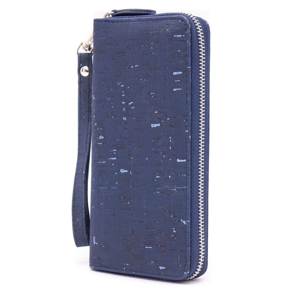 Natural Cork Wallet for Women Vegan Cork Leather Modern Wallet, blue, Modern