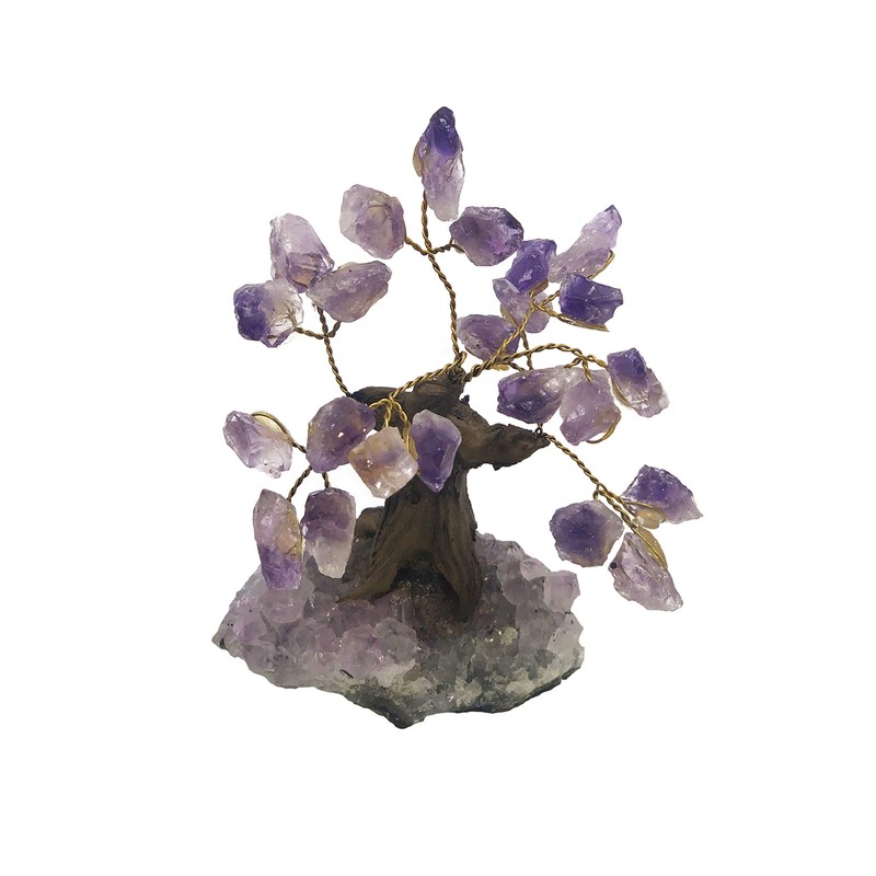 Natural Crystal Tree Decor, Desk Decor with Amethyst Crystal Chakra Stones, Gemstone Tree with Crystals and Healing Stones, Purple, Small, 3.5-Inches Tall - Nature’s Decorations