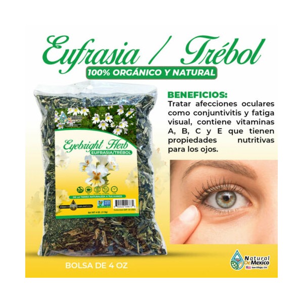 Natural de Mexico USA Eufrasia Trebol Herb Tea 4 oz-113g. Eyebright Herbal Tea, Eye Health Support