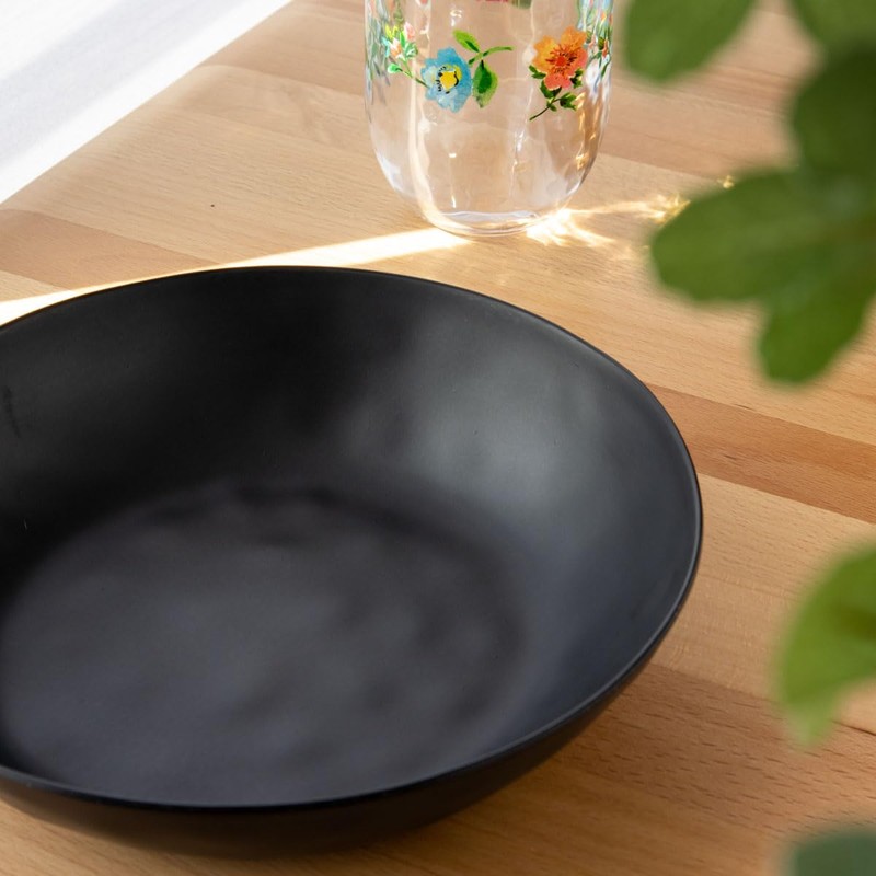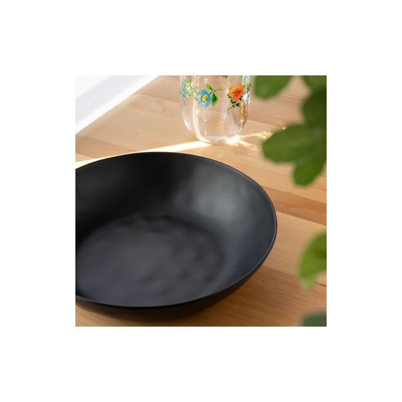 - Matte Chic Black Melamine dinnerware mimics a handmade texture. This is a series of natural ingredients from melamine, which is formulated with more than 20% natural ingredients. Bamboo fiber and melamine resin, this table ware is safe for people and the environment. 20% natural ingredients, it is an exquisite blend of ingredients calculated to maintain the strength of melamine while incorporating natural ingredients The rich and smooth surface of the melamine dinnerware is unique to its melamine dinnerware and has speckled bamboo fiber to create a tasteful dish that feels naturally gentle. BPA free, dishwasher safe (heat resistant 0-100℃)