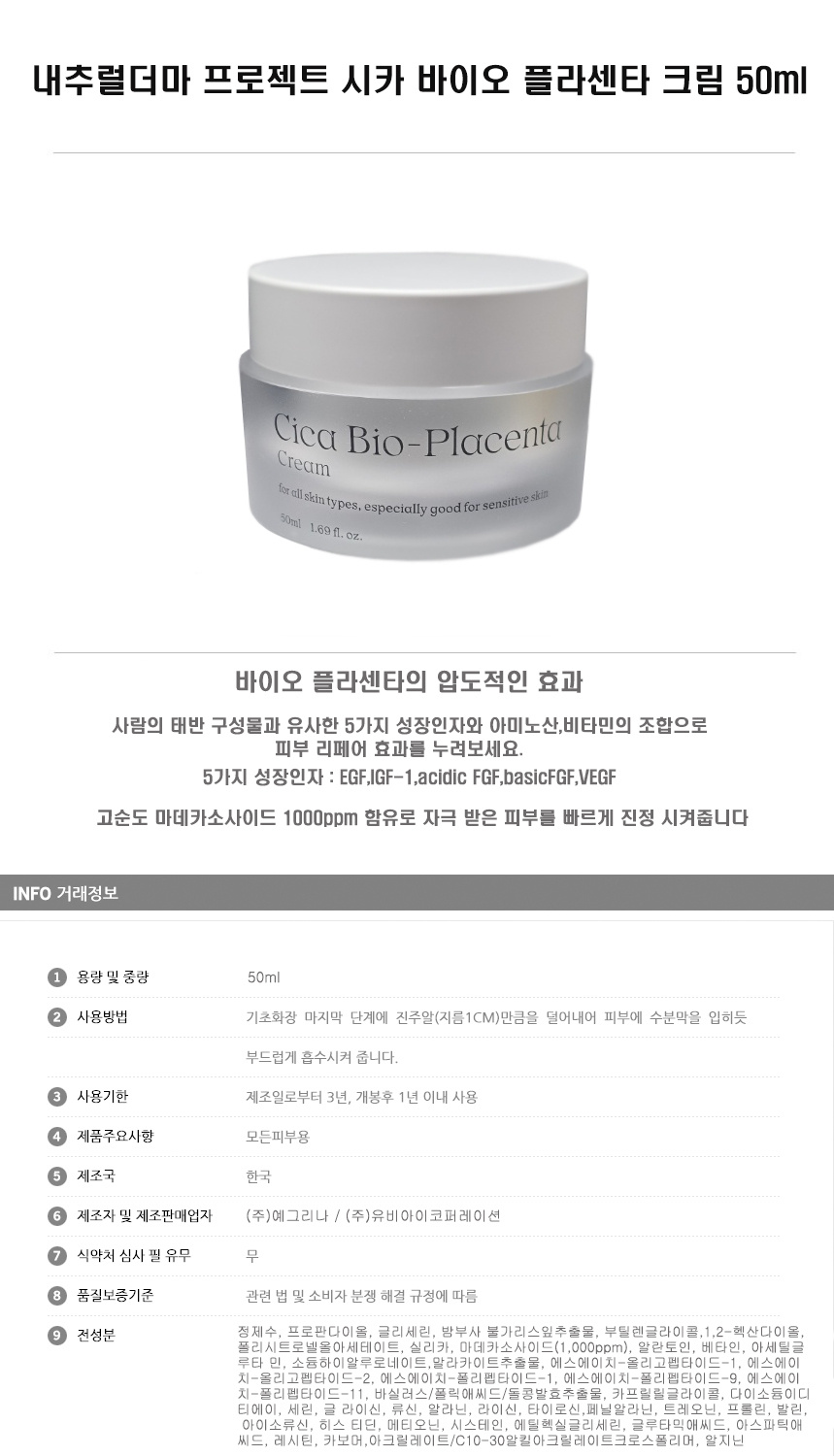 내추럴더마 프로젝트 시카 바이오 플라센타 크림 50ml