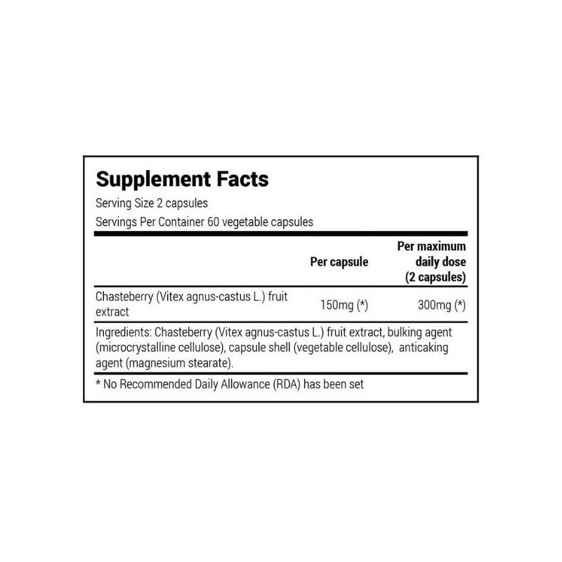 | Chasteberry fruit extract (Vitex agnus-castus L.) | 150 mg | - |