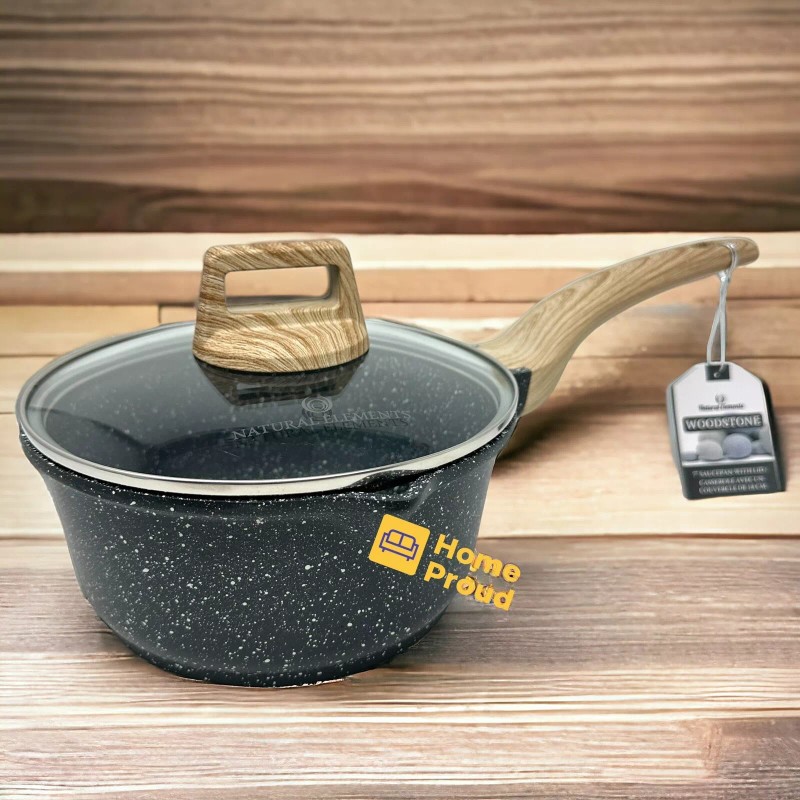 Natural Elements Cookware WOODSTONE Premium Saucepan Casserole Nonstick 7 Inch With Lid Natural Elements