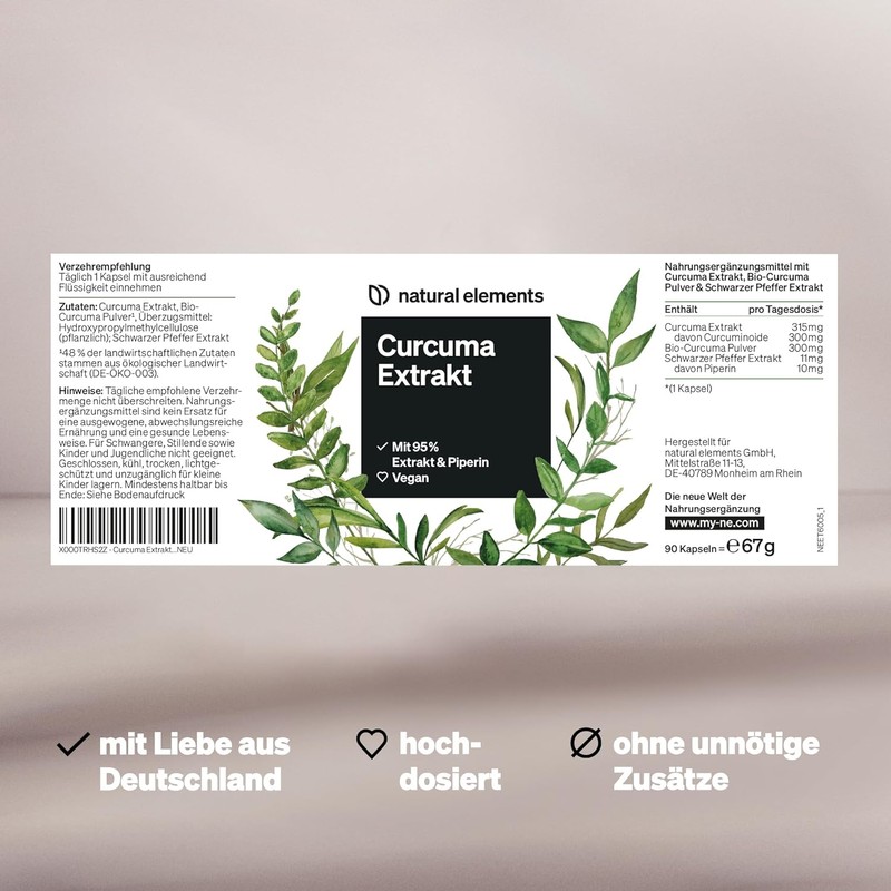 natural elements Curcuma extract capsules – comparison winner 2018* – curcumin content of one capsule corresponds to that of approx. 10.000 mg turmeric - high dose of 95% extract - laboratory-tested and manufactured in Germany