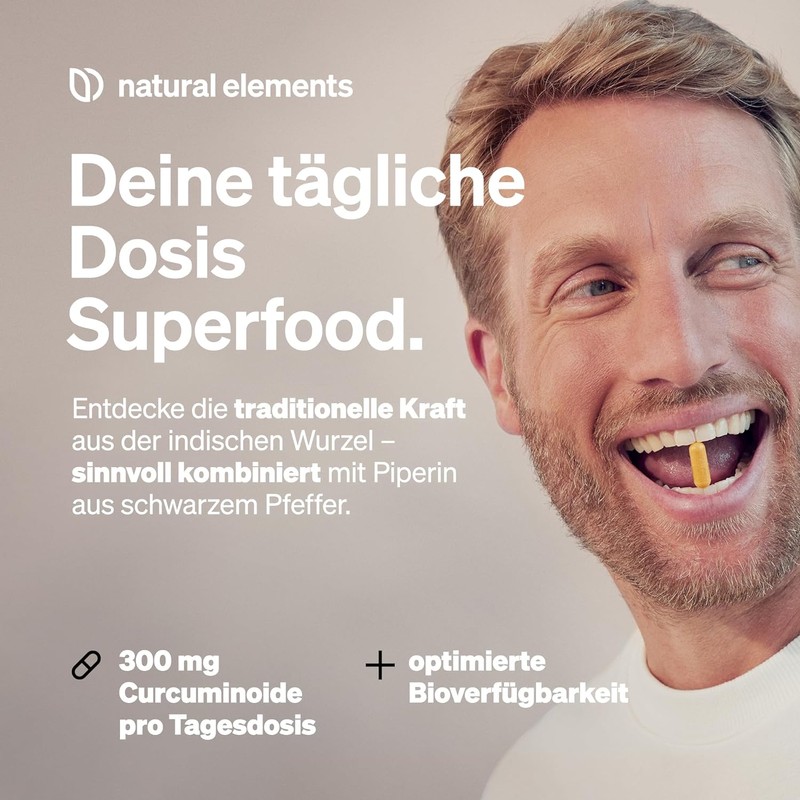 natural elements Curcuma extract capsules – comparison winner 2018* – curcumin content of one capsule corresponds to that of approx. 10.000 mg turmeric - high dose of 95% extract - laboratory-tested and manufactured in Germany
