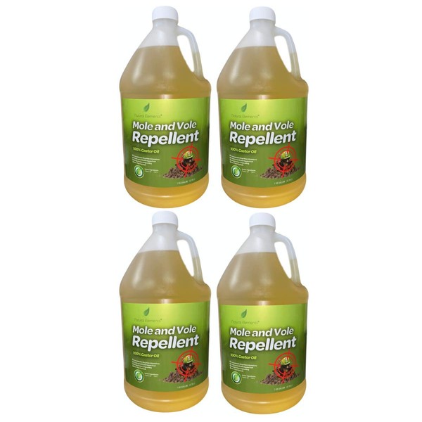 Natural Elements Mole and Vole Repellent | 100% Castor Oil | Pet Safe and Non Toxic (4 Gallons)