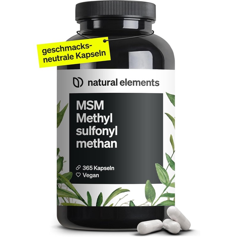 natural elements MSM capsules – comparison winner 2018* – 365 vegan capsules – laboratory tested – 1600 mg methylsulfonylmethane (MSM) powder per daily dose – without magnesium stearate, high dose, made in Germany