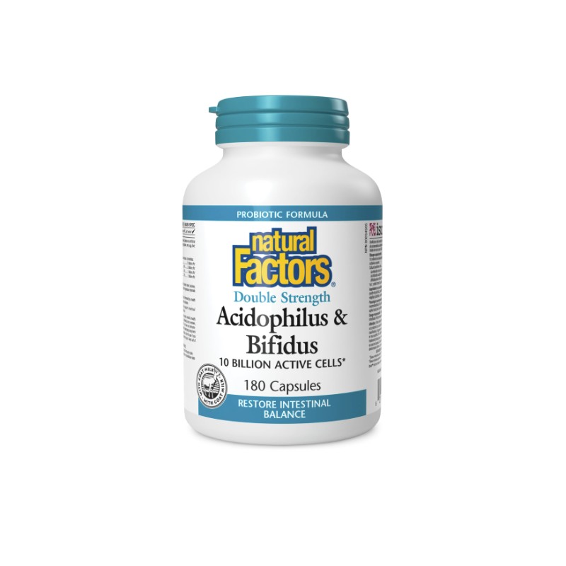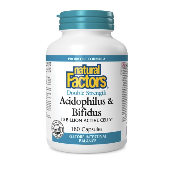 Natural Factors Acidophilus & Bifidus Double Strength 10 Billion Active Cells 180 Capsules